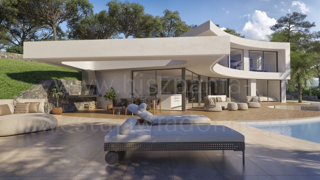 Elegancko zaprojektowana nieruchomość, zaledwie 8 minut od plaży. Ciesz się panoramicznymi widokami na morze, Park Naturalny Montgó oraz dolinę w tej doskonale wyposażonej willi.